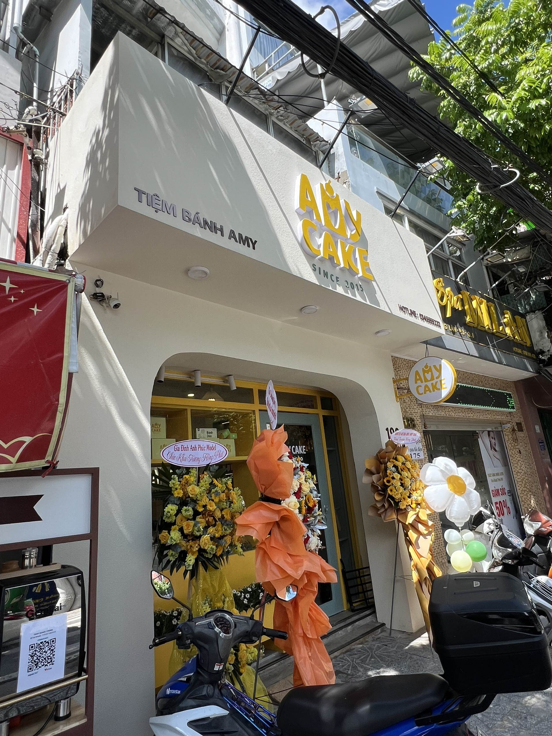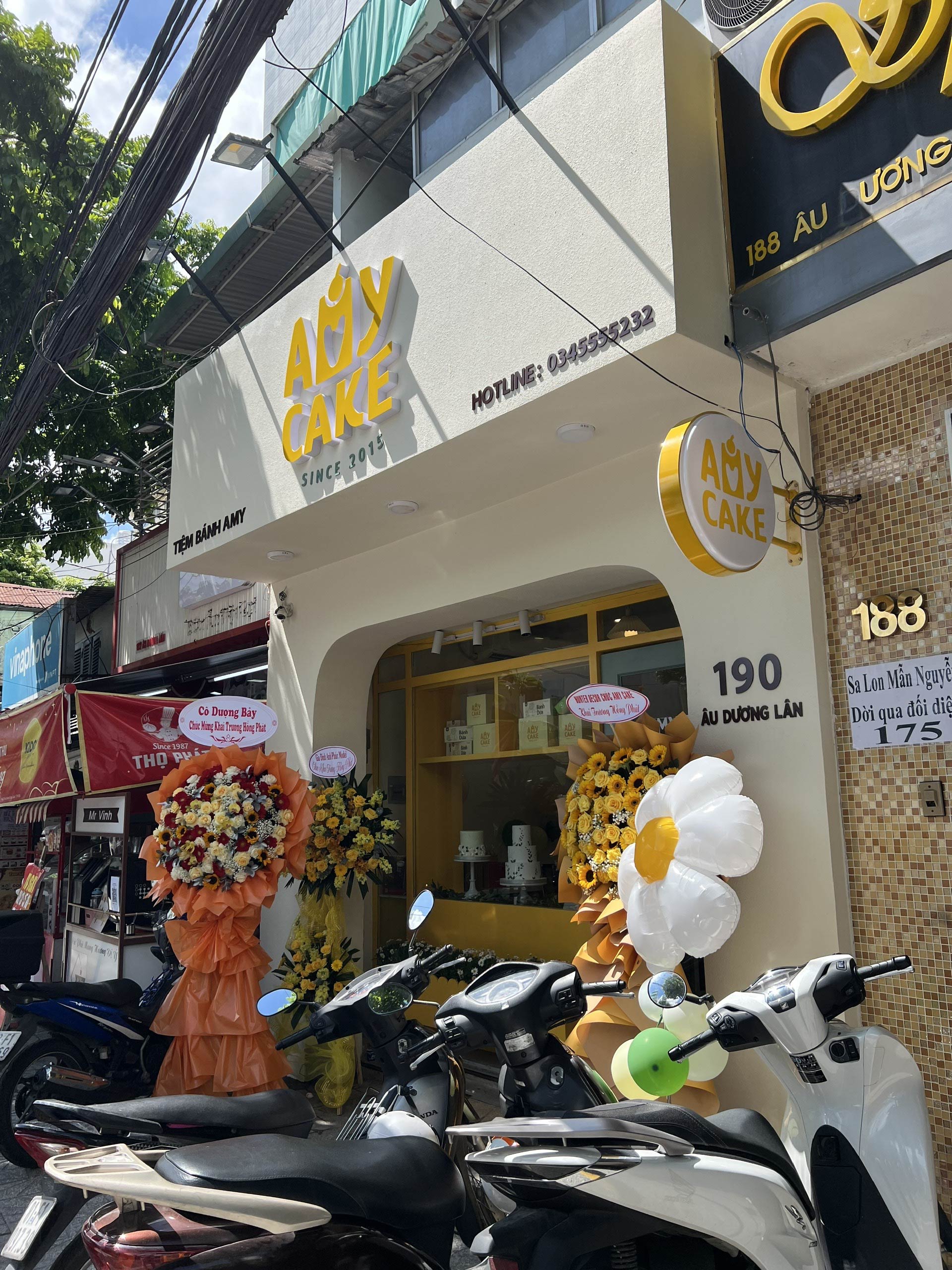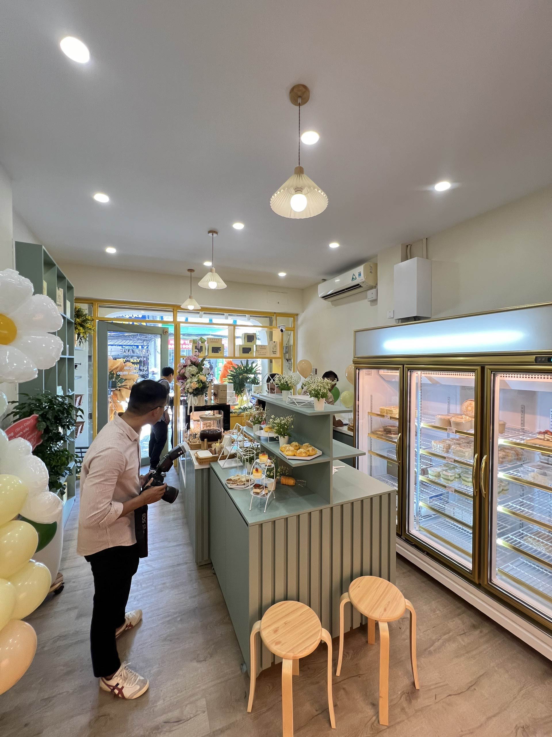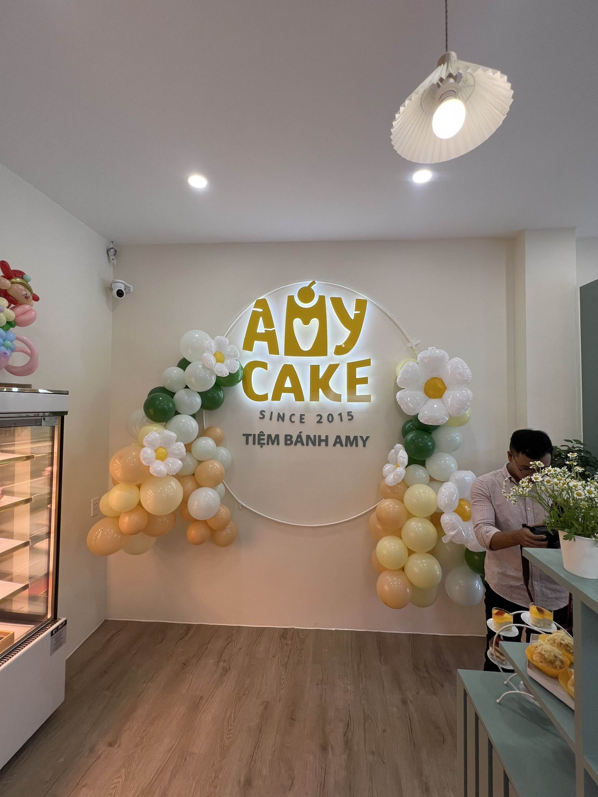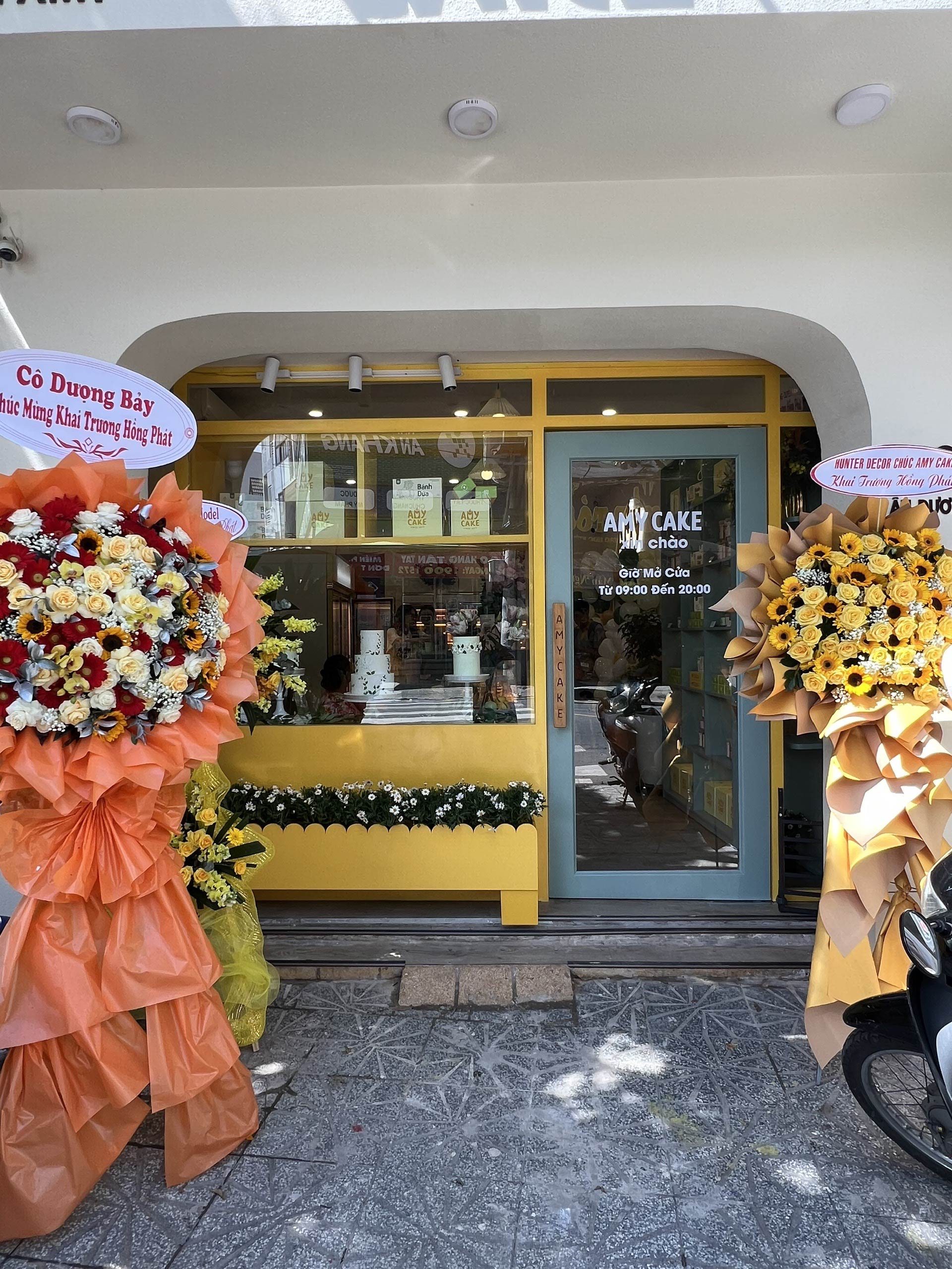Hunter Decor bàn giao mặt tiền tiệm bánh Amy với thiết kế đầy sức hút. Hệ kính cường lực trong suốt kết hợp cùng bảng hiệu tinh tế, làm nổi bật không gian trưng bày bánh ngọt đầy nghệ thuật bên trong. Sự kết hợp giữa ánh sáng ấm áp và vật liệu hiện đại tạo nên diện mạo sang trọng, giúp Amy trở thành điểm nhấn nổi bật trên phố.