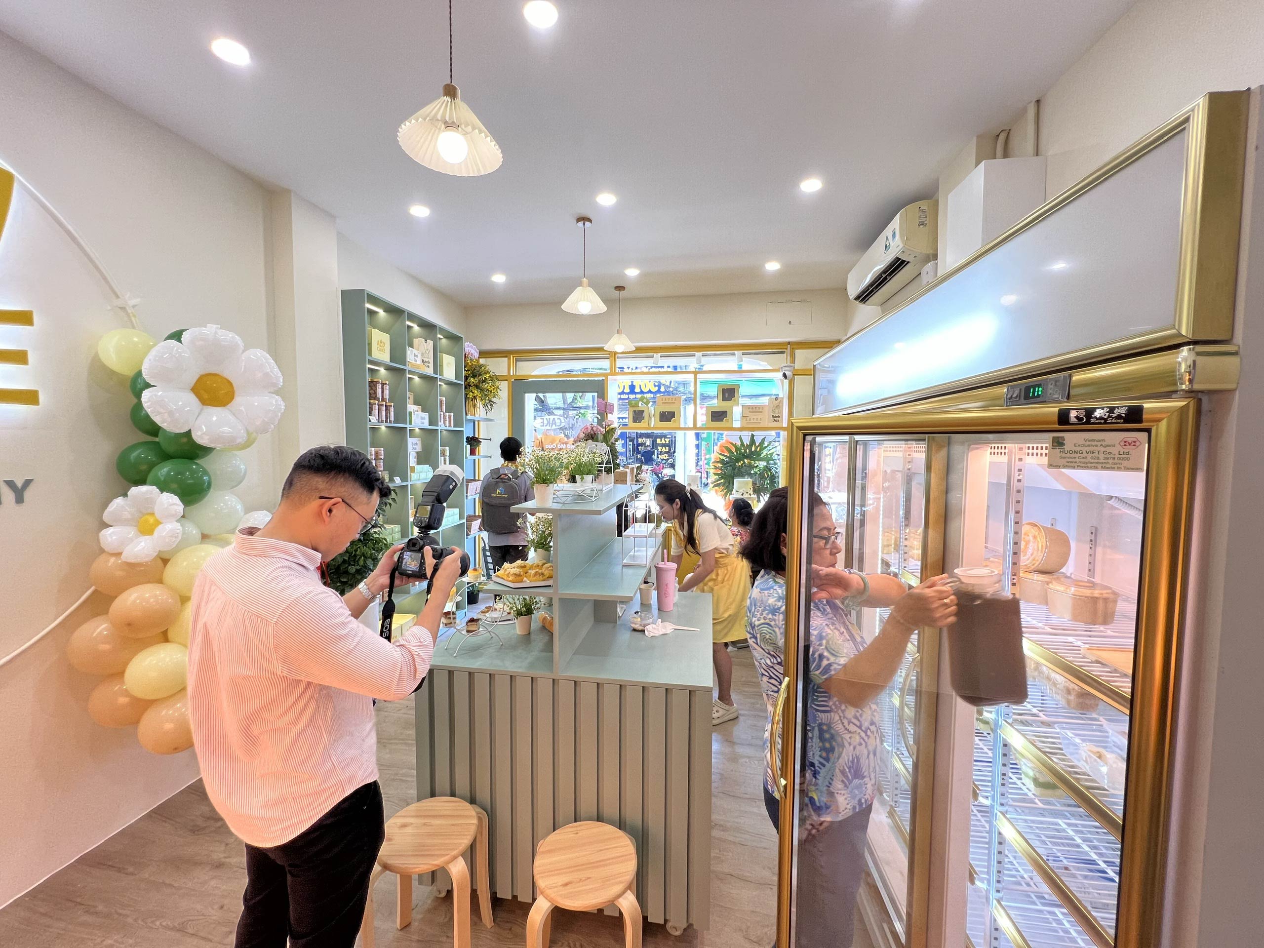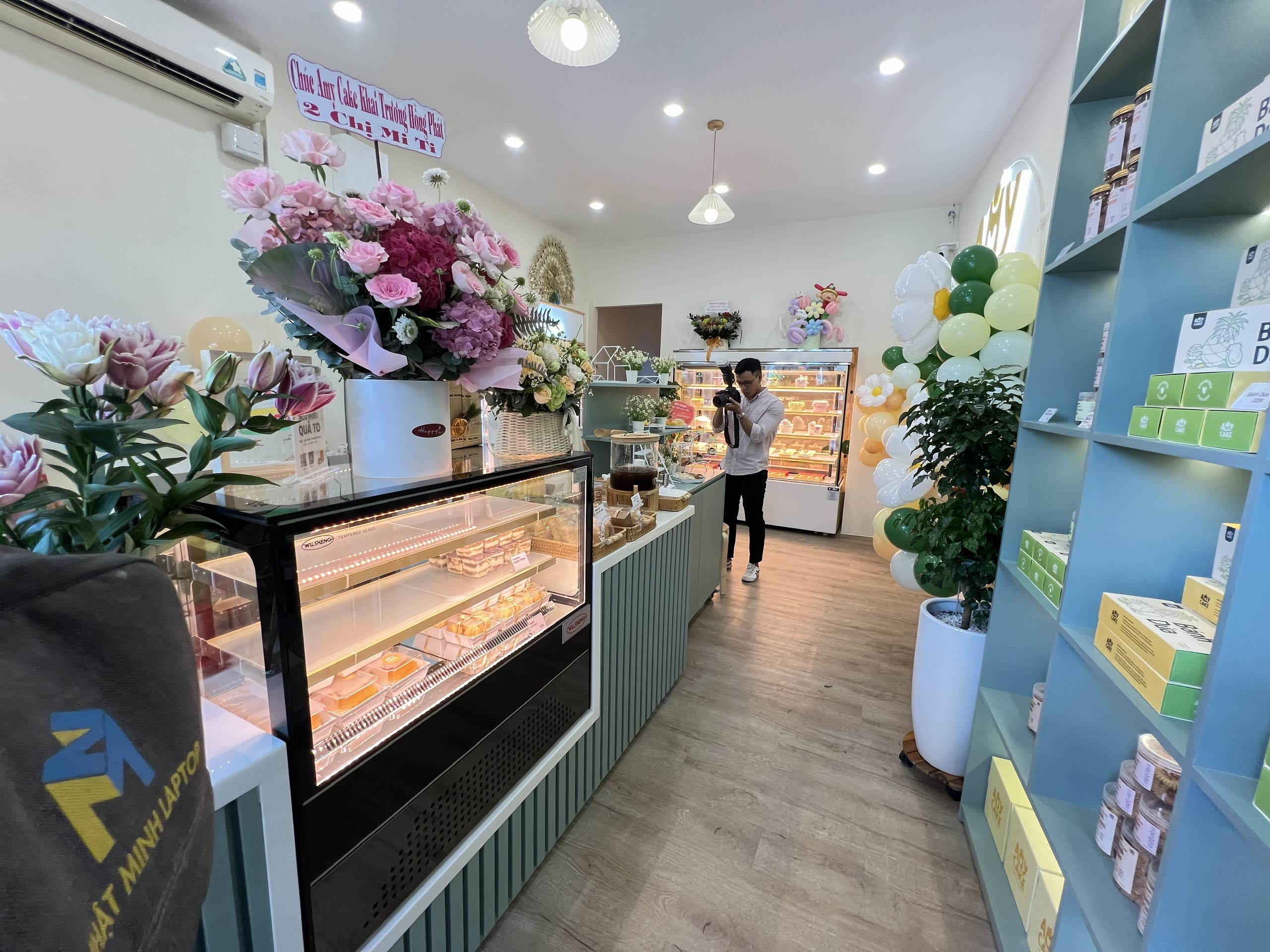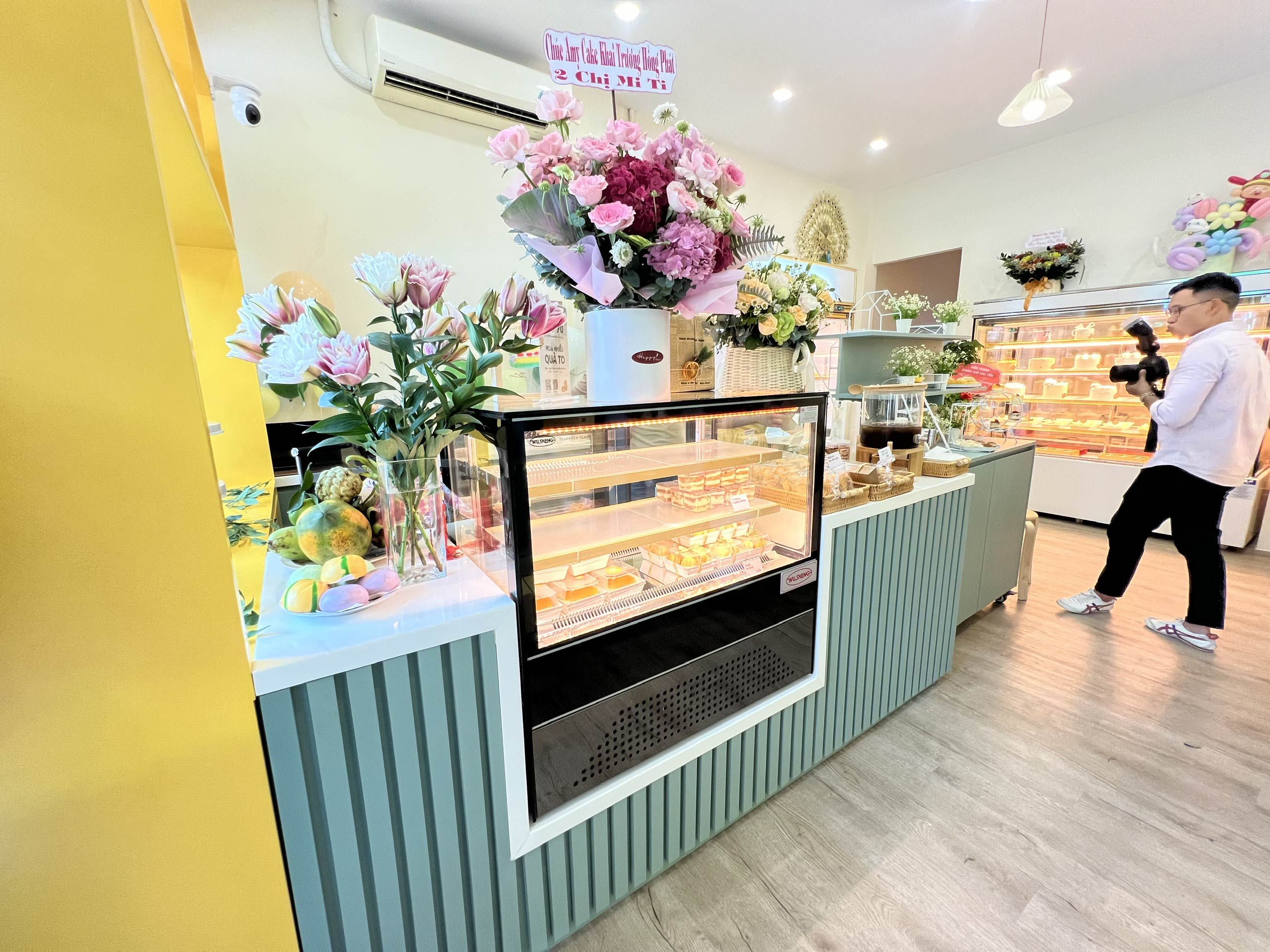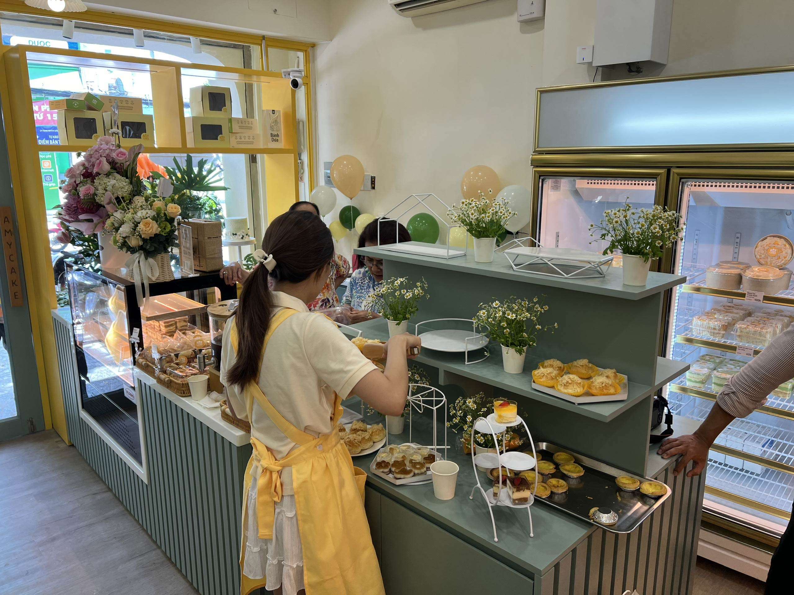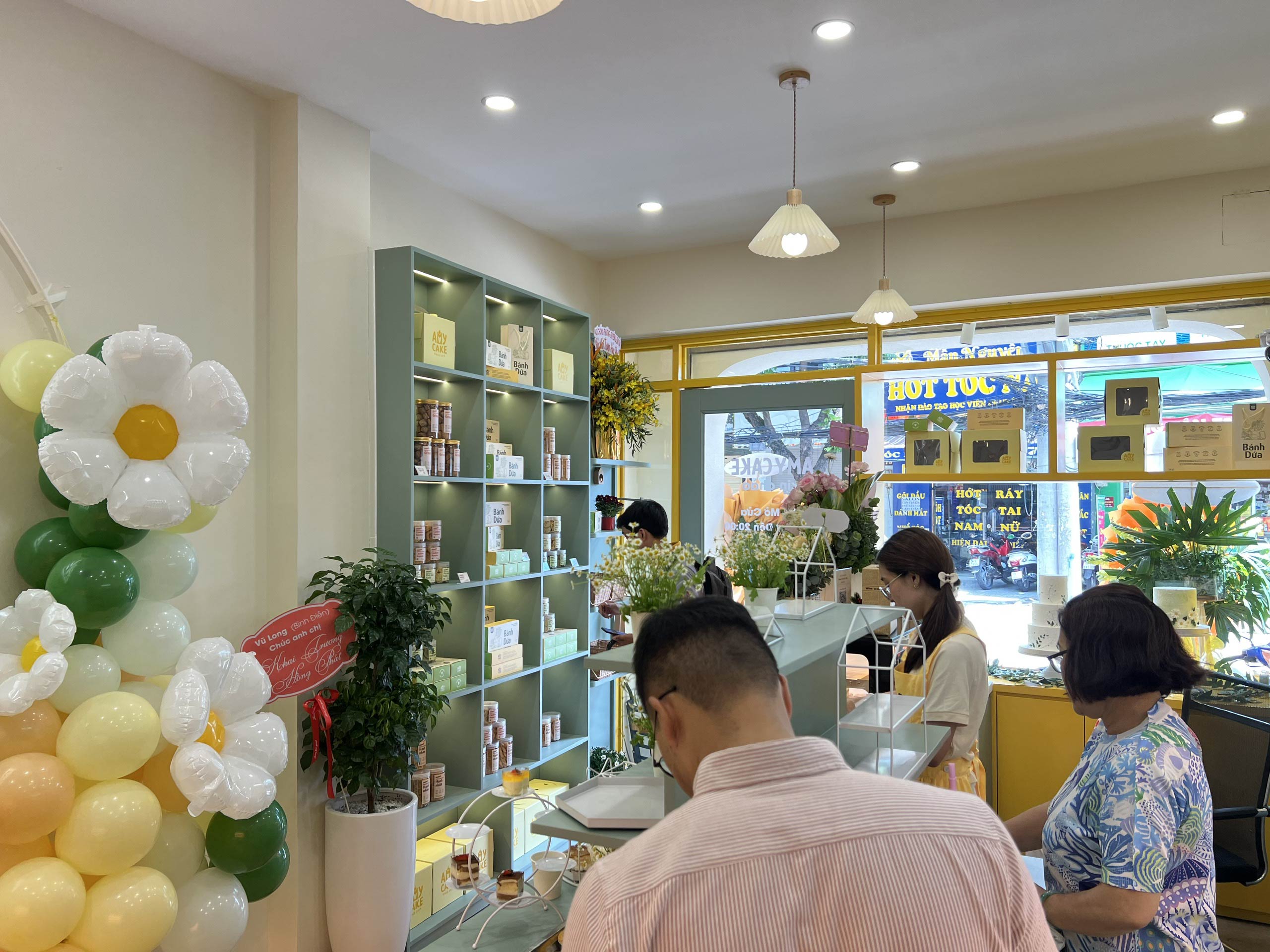 Hunter Decor bàn giao mặt tiền tiệm bánh Amy với thiết kế đầy sức hút. Hệ kính cường lực trong suốt kết hợp cùng bảng hiệu tinh tế, làm nổi bật không gian trưng bày bánh ngọt đầy nghệ thuật bên trong. Sự kết hợp giữa ánh sáng ấm áp và vật liệu hiện đại tạo nên diện mạo sang trọng, giúp Amy trở thành điểm nhấn nổi bật trên phố.