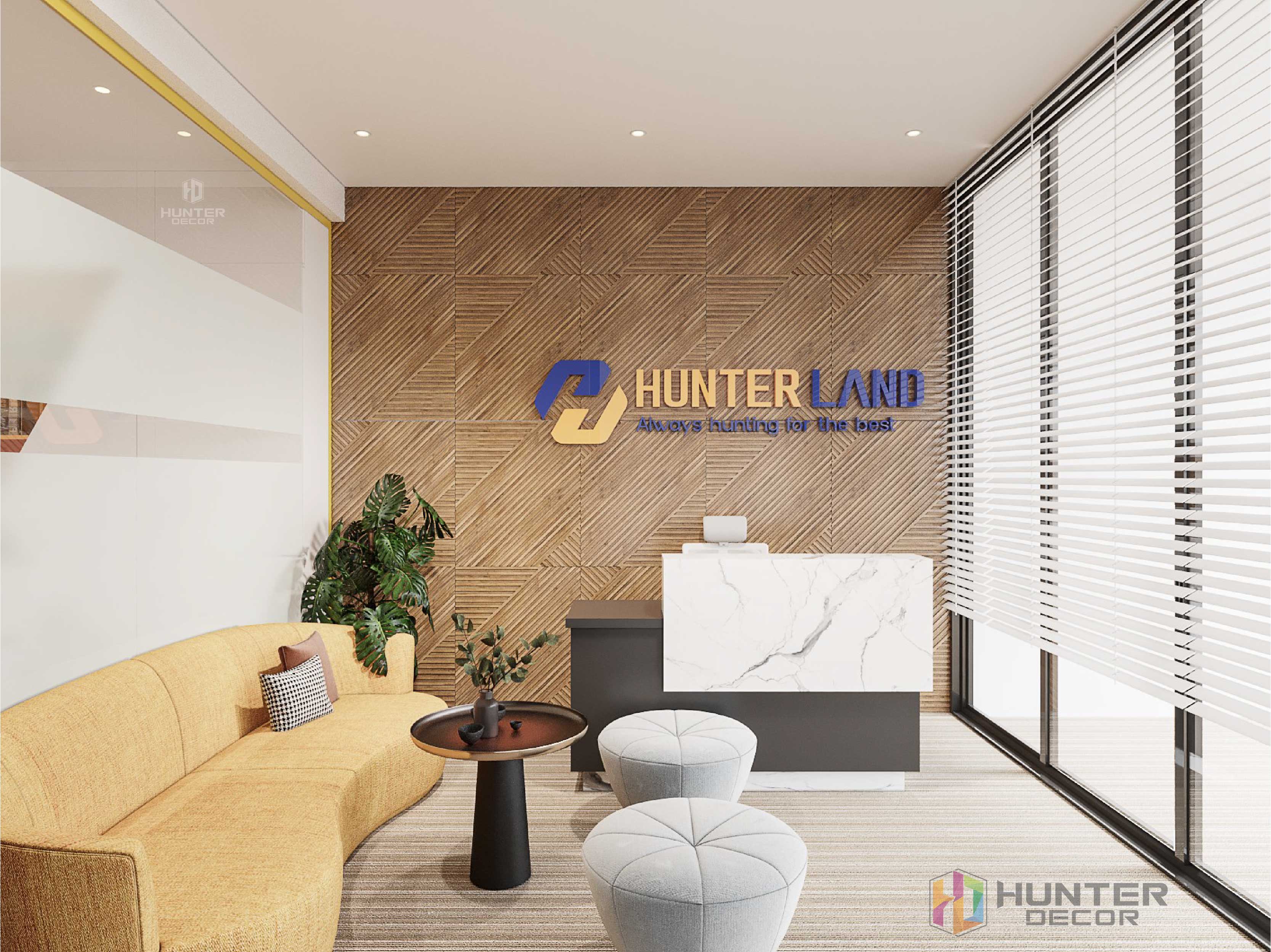 Logo công ty Hunter Land được làm nổi bật tạo điểm nhấn, sang trọng.